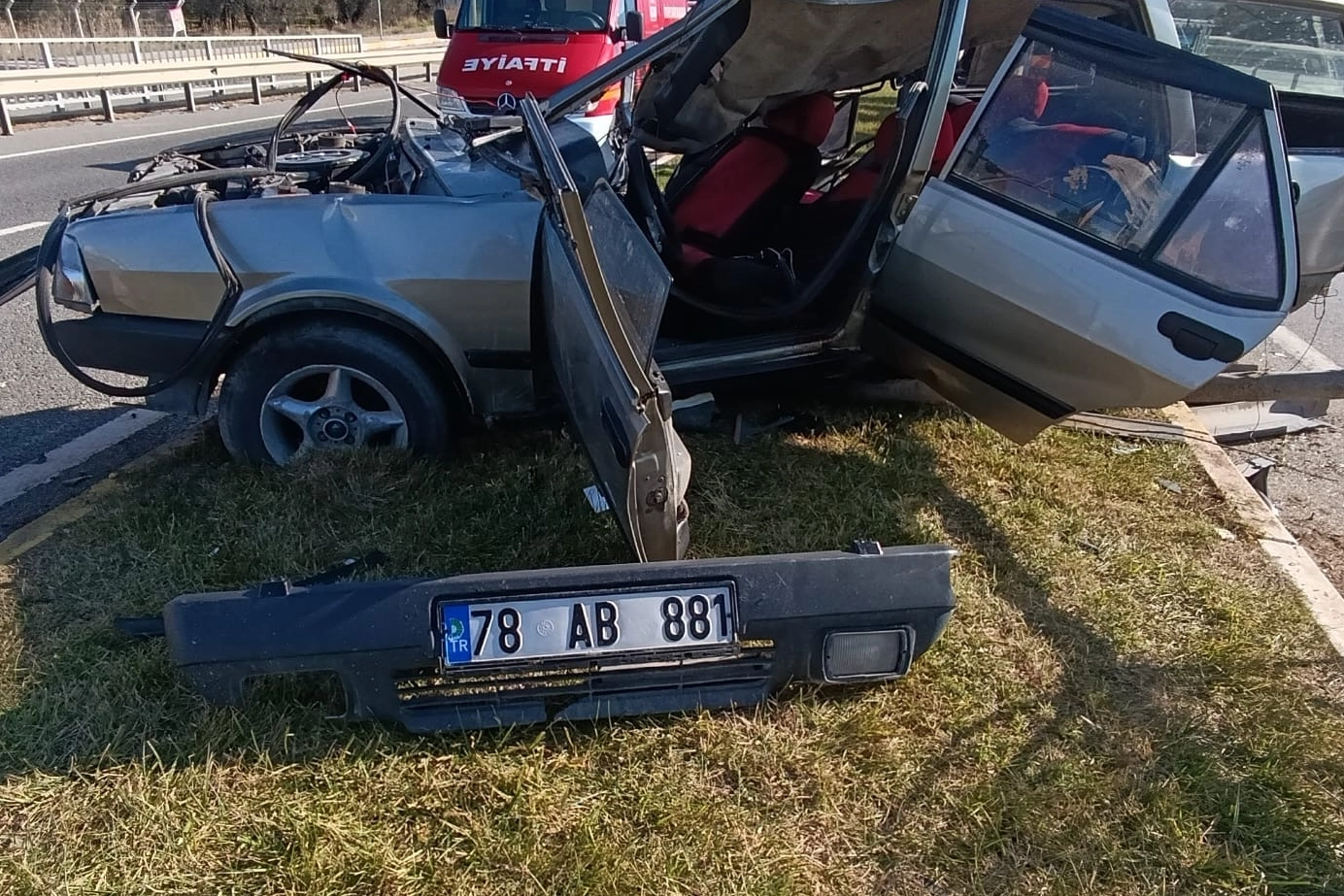 Çarpmanın şiddetiyle savrulan otomobil, refüjdeki aydınlatma direğine çarparak durdu.Kazada otomobil sürücüsü Ö.Ç. ile yanındaki M.Ş. ve B.Ç. yaralandı.