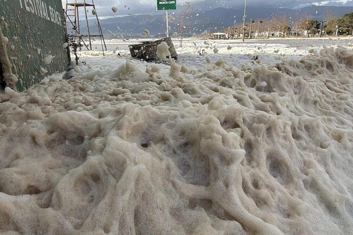 Edremit Körfezi'nde etkisini gösteren şiddetli lodos hayatı olumsuz etkilerken, Altınkum Mahallesi sahilinde ender rastlanan bir doğa olayı meydana geldi. Fırtına nedeniyle denizde oluşan dev dalgalar kıyıya vurdukça yoğun bir köpük tabakası meydana getirdi. Kilometrelerce uzanan sahil şeridi, denizden gelen köpüklerle kaplanınca ortaya kar yağışını andıran görüntüler çıktı. Sahilin beyaza büründüğünü gören vatandaşlar ise bu ilginç doğa olayını şaşkınlıkla izledi. Vatandaşlar o anları cep telefonlarıyla kaydetti. Köpüklenmenin denizdeki organik maddelerin rüzgar ve dalga etkisiyle reaksiyona girmesi sonucu oluştuğu tahmin ediliyor.
