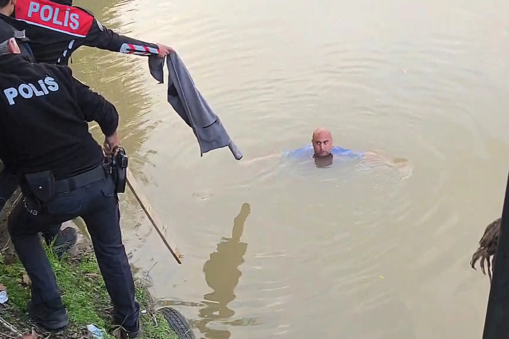 Soğuk havada sırılsıklam olan şahıs, ambulans gelene kadar bir polisin verdiği montla sıcak tutulmaya çalışıldı. Bir sivil polis, üzerindeki montu çıkararak şahsın üzerine sardı. Şahıs, 112 ekiplerinin ilk müdahalesinin ardından ambulansla hastaneye kaldırıldı.
