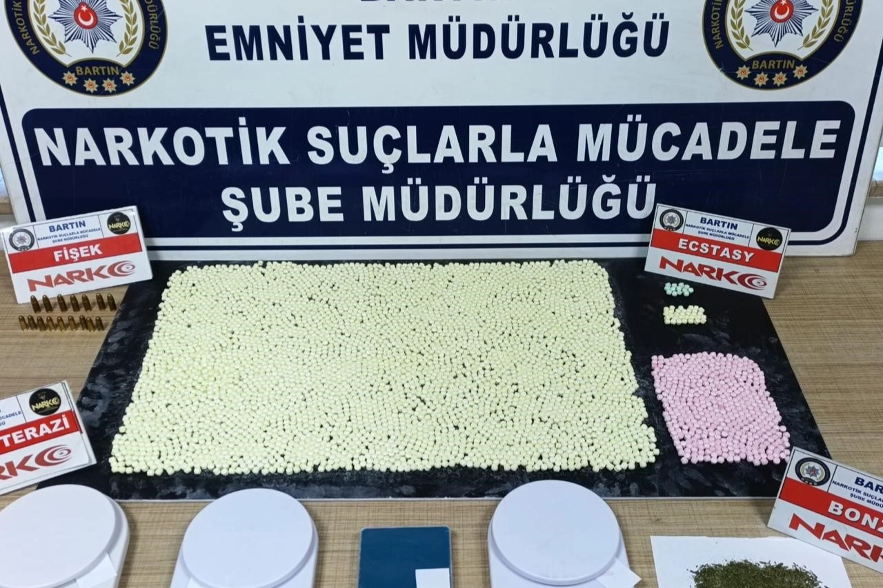 Yapılan ikamet aramalarında ise 4 bin 659 adet ekstasy hap, 4 adet hassas terazi, 3,38 gram sentetik kannabinoid (bonzai), 7 adet 9x19 mm, 9 adeti 7x65 mm olan toplam 16 adet fişek ele geçirildi. Ele geçirilen 4 bin 659 adet ekstasy uyuşturucu hap ise, Bartın tarihinde bir operasyonda ele geçirilmiş en fazla miktardaki ekstasy hap oldu. Gözaltına alınan 10 kişi, Emniyet Müdürlüğü'nündeki işlemleri tamamlanarak önce hastaneye ardından ise Bartın Adliyesi'ne sevk edildi. 8 kişi tutuklandı