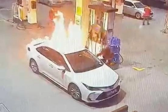 Öte yandan, korku dolu o anlar ise akaryakıt istasyonunun güvenlik kamerası tarafından kaydedildi. Yangının çıkış nedeninin belirlenmesi için inceleme başlatıldı.