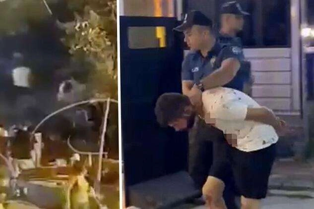 Yaşananlar ise güvenlik kameralarına anbean yansıdı. Görüntülerde, grup uyarıya gelen polislerin üstüne yürüyor. Şahıslardan biri alkol şişesini polise fırlatıyor. Ardından gruptaki bir şahıs polise memuruna yumruk atıyor. Daha sonra da şahıslar polis tarafından etkisiz hale getiriliyor.