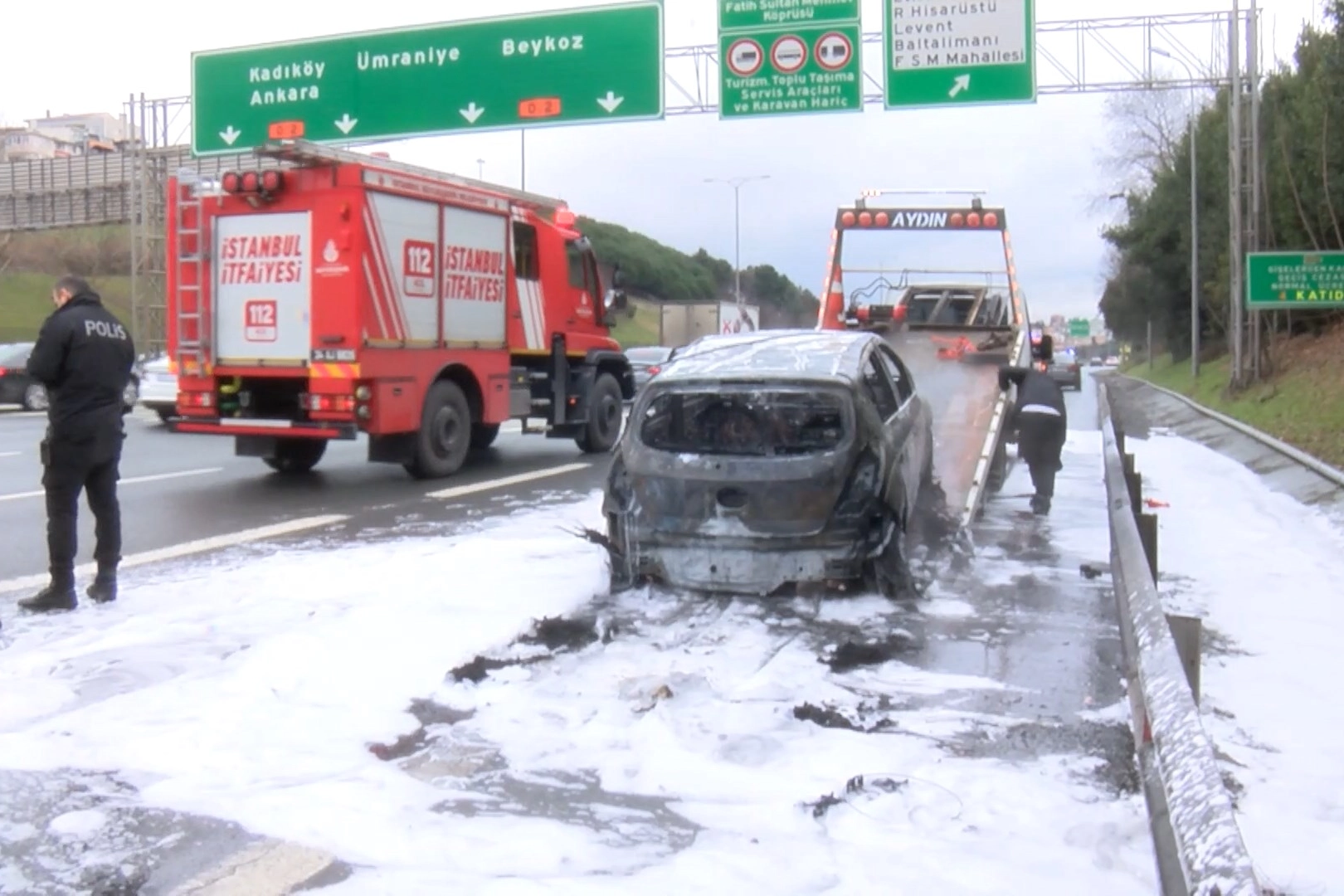 İstanbul Beşiktaş'ta yangın saat 12.30 sıralarında TEM Otoyolu Etiler yol ayrımında FSM Köprüsü istikametinde seyreden otomobilin motor kısmında çıktı.