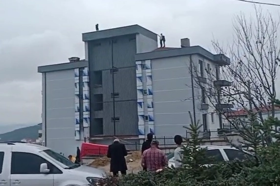 Bilecik merkez Beşiktaş Mahallesi Gülveren Sokak'ta Bilecik İl Özel İdaresi Plan, Proje, İnşaat ve Yatırım Müdürlüğü tarafından afete maruz kalan bölgelerde bulunan hak sahipleri için yapılan inşatta işçi olduğunu belirten bir şahıs, müteahhitten alacağı olduğunu iddia ederek çatıya çıktı. 5 katlı binanın çatısına çıkan şahsı gören diğer işçi arkadaşları durumu hemen 112'ye haber verdi. Olay yerine polis ve itfaiye ekipleri yönlendirildi. Ekipler apartmanın önüne şahsın atlaması ihtimaline karşı şişme yatak açtı.