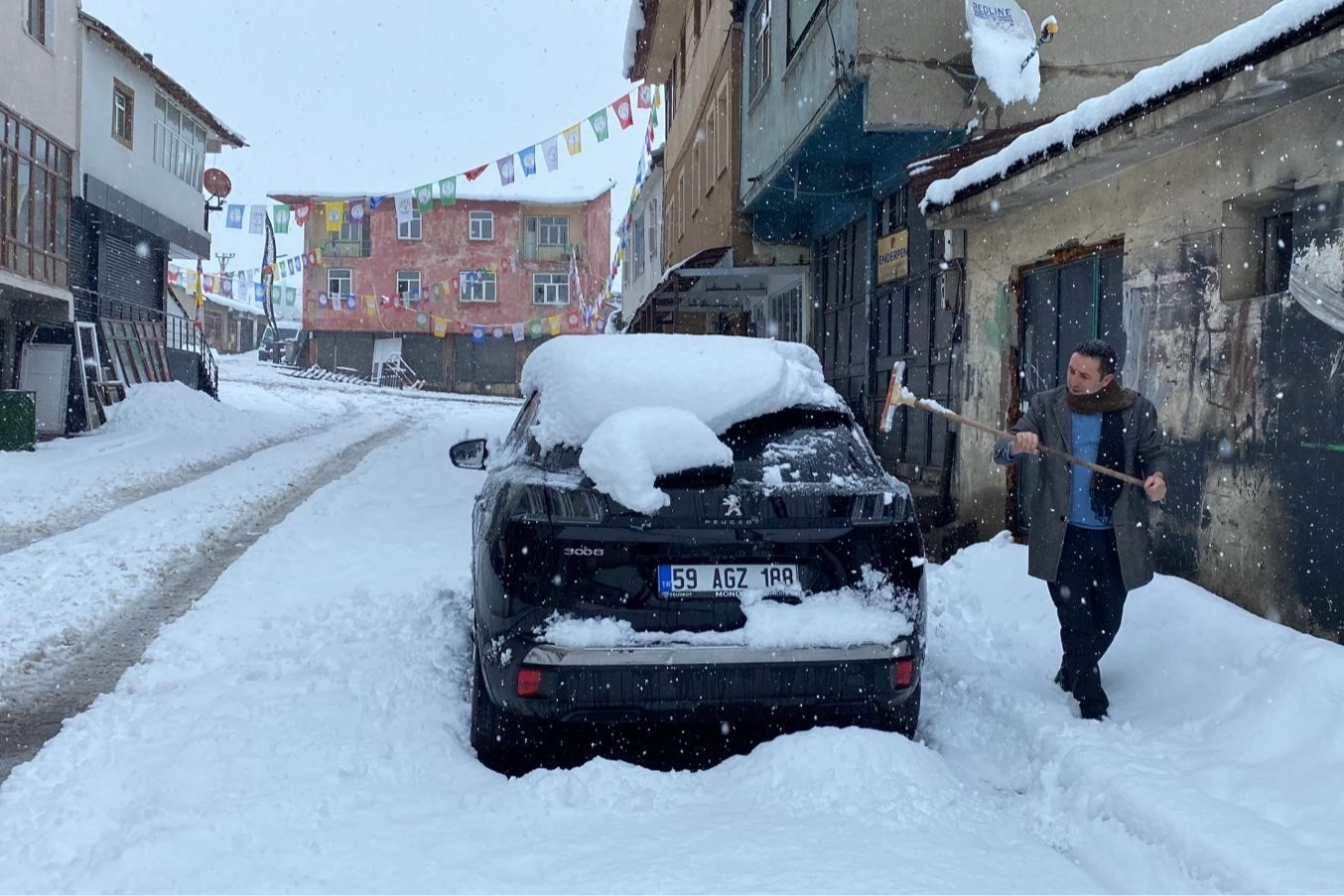Öte yandan güne karla başlayan esnaf, iş yerlerinin önünü temizlerken, sürücüler de fırça yardımıyla araçlarını kardan temizledi. İbrahim Aksoy adlı vatandaş, “Kış ayının çetin olan günleri çok iyi geçti fakat ilkbahar ayındayız kar iyi yağıyor” dedi.