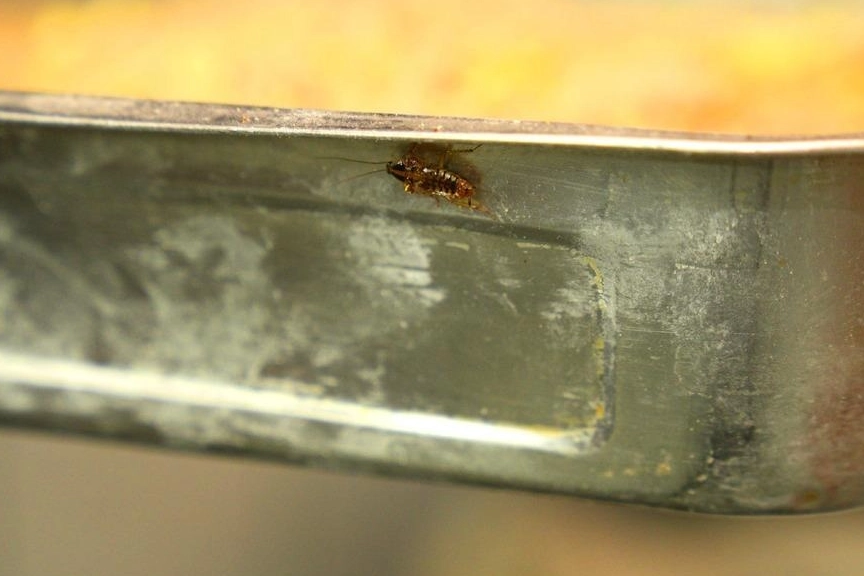 Adana'da İlçe Tarım Müdürlüğü ve zabıta ekipleri bir tatlıcıda denetim yaparken işletmenin üretim hanesinde böcekler çıktı.