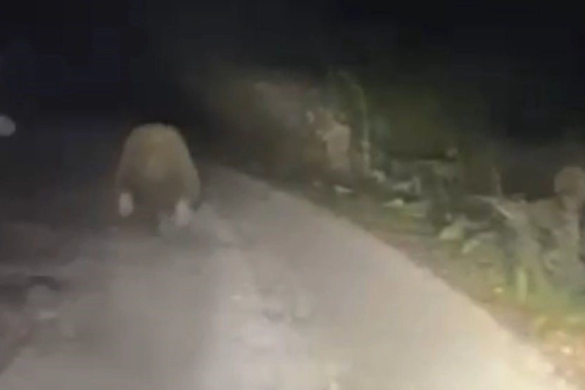 Bolu'da aracın ışıklarından korkan ayı böyle kaçtı