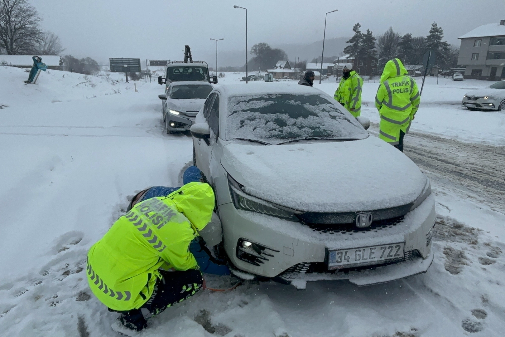 Topuk yaylasına gittiğini söyleyen ve aracının lastiklerine zincir takan Özkan Dönmez, "Topuk yaylasına çıkıyoruz. Zincir takmamız gerekiyor. Kar bir anda bastırdı" dedi.