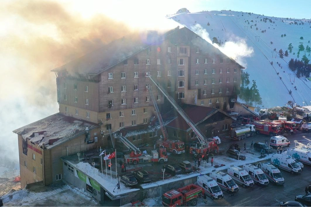 Bolu Kartalkaya Kayak Merkezi'ndeki Grand Kartal Otel, gece yarısı adeta cehennem yaşadı.