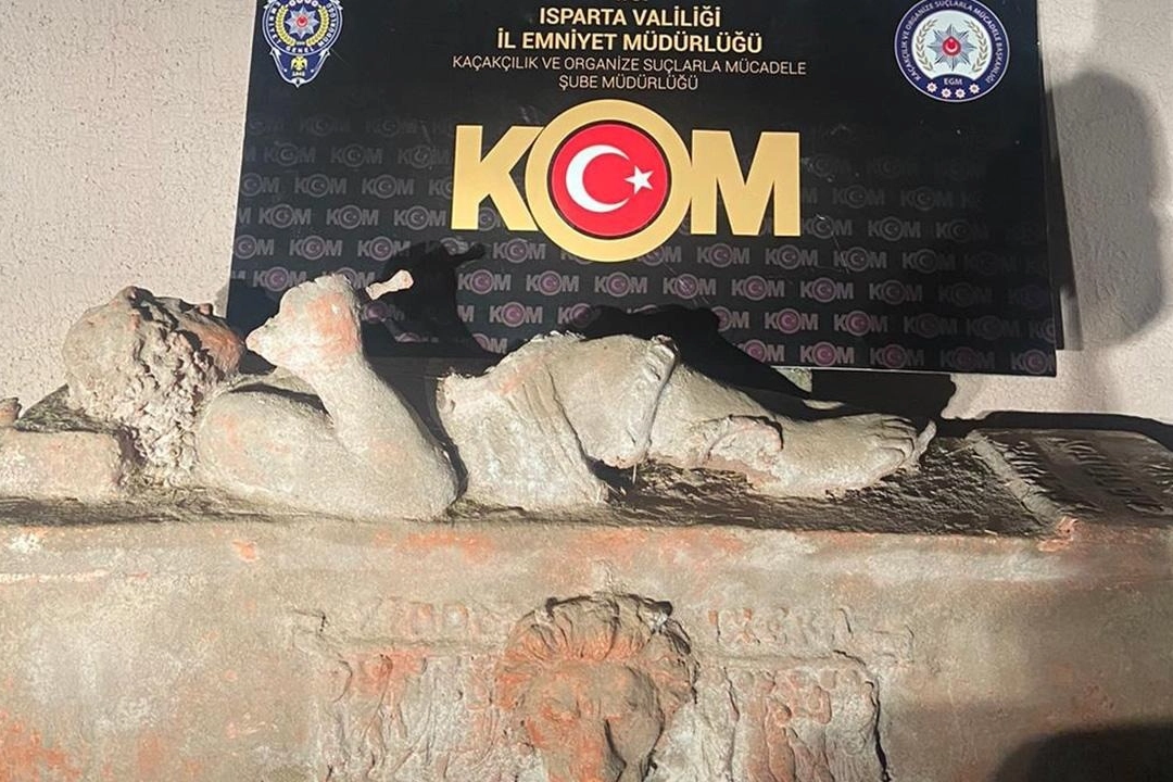Yaklaşık 1,5 metre uzunluğundaki lahit, Burdur Müze Müdürlüğü'ne teslim edildi.