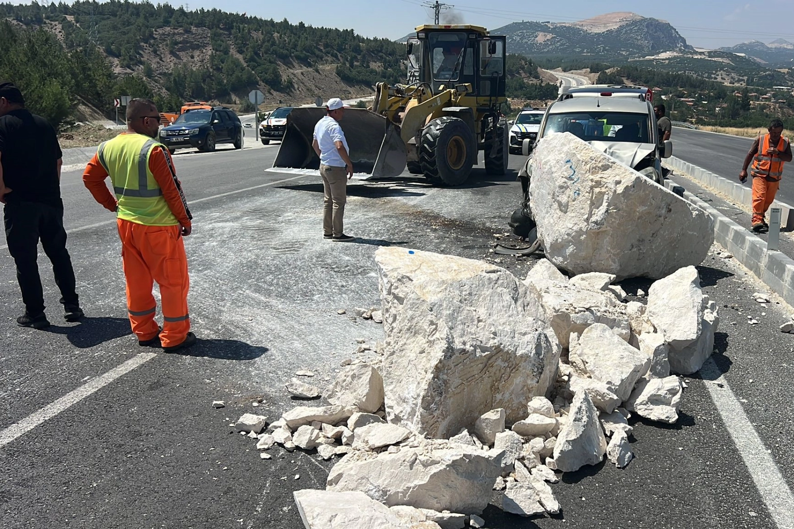 Kaza, saat 12.00 sıralarında Burdur merkeze bağlı Karaçal köyü yolu üzerinde meydana geldi. Edinilen bilgilere göre, 16 BSJ 48 plakalı Fiat marka otomobil ile seyir halinde olan 79 yaşındaki Helena K., önünde ilerleyen 15 ABP 191 plakalı ve Ufuk A. (54) idaresindeki tırın dorsesinden yola düşen mermer bloğuna çarptı. Çarpmanın etkisiyle otomobilde maddi hasar meydana gelirken, sürücü Helena K. yaralandı. İhbar üzerine olay yerine sağlık ve jandarma ekipleri sevk edildi. Yaralı sürücüye ilk müdahale olay yerinde yapıldıktan sonra ambulansla hastaneye kaldırıldı. Kazayla ilgili inceleme başlatıldı.
