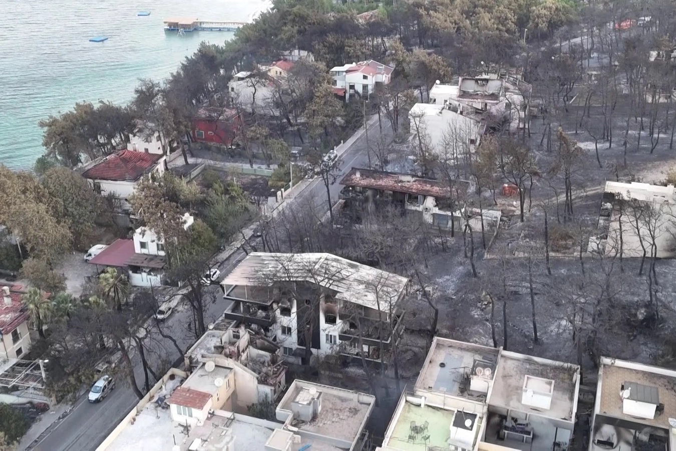 Güzelyalı bölgesindeki villalarda yaşanan hasar ise sabahın erken saatlerinde dron ile görüntülendi. Yangının acı bilançosu dron görüntülerine yansıdı.