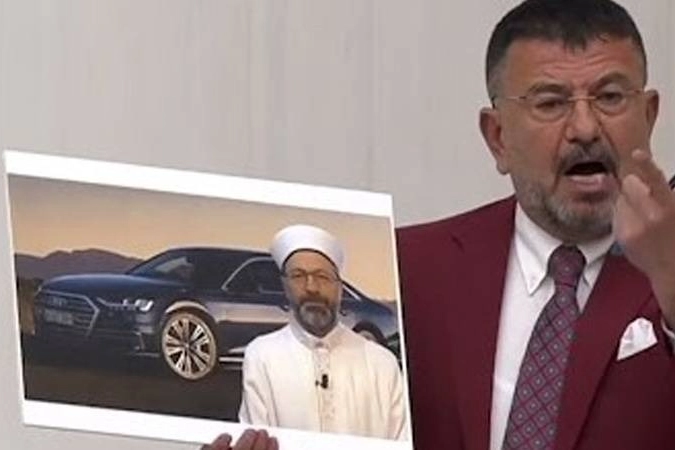 "Bu fotoğrafa siz yabancı değilsiniz AK Parti milletvekilleri olarak. Çünkü israf ve şatafat sizin yaşam biçiminiz olmuş durumda. 16 milyon emeklinin 10 bin lira maaş aldığı bir ülkede, yüz binlerce asgari ücretlinin geçinmekte, beslenmekte zorlandığı bir dönemde Diyanet İşleri Başkanı'nın bindiği araca bakın. Tam da bu arada Mehmet Şimşek, tasarruf genelgesi yayınlıyor. Mehmet Şimşek, kim tasarruf edecek, fakir fukara mı? Hiç uzağa gitme, genelge yayınlayacağına Diyanet İşleri Başkanı'na 'alo' de 6 tane makam aracına binmesin, 1 tane makam aracına binsin. Ayrıca biliyorsunuz, AK Parti, Sayın Erbaş, yerli ve milli. Yahu yerli ve milliysen TOGG'a binsene. TOGG'a niye binmiyorsun? Ayağın mı kirlenir? Ne özelliğin var senin? Bu aracın günlük kirası 25 bin TL. Bir emekli 2 buçuk aylık maaşıyla bu arabaya binebiliyor. Bir asgari ücretli, bir buçuk maaşıyla bu arabaya binebiliyor. Allah bunları ıslah etsin, Allah bunlara vicdan versin."