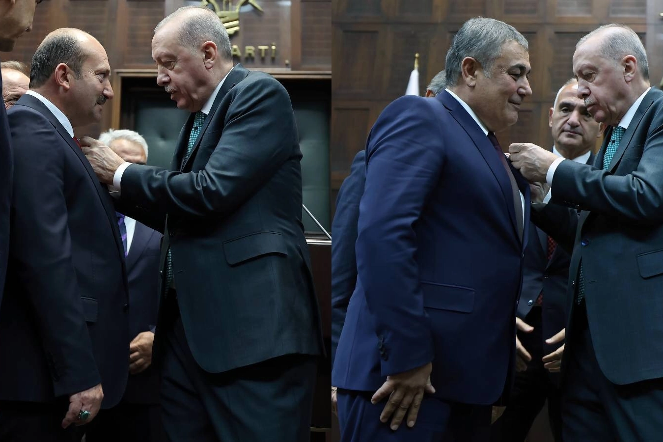 AK Parti grup toplantısında yapılan törende Cumhurbaşkanı Erdoğan, Yıldırım ve Koç’a parti rozetlerini bizzat taktı.
