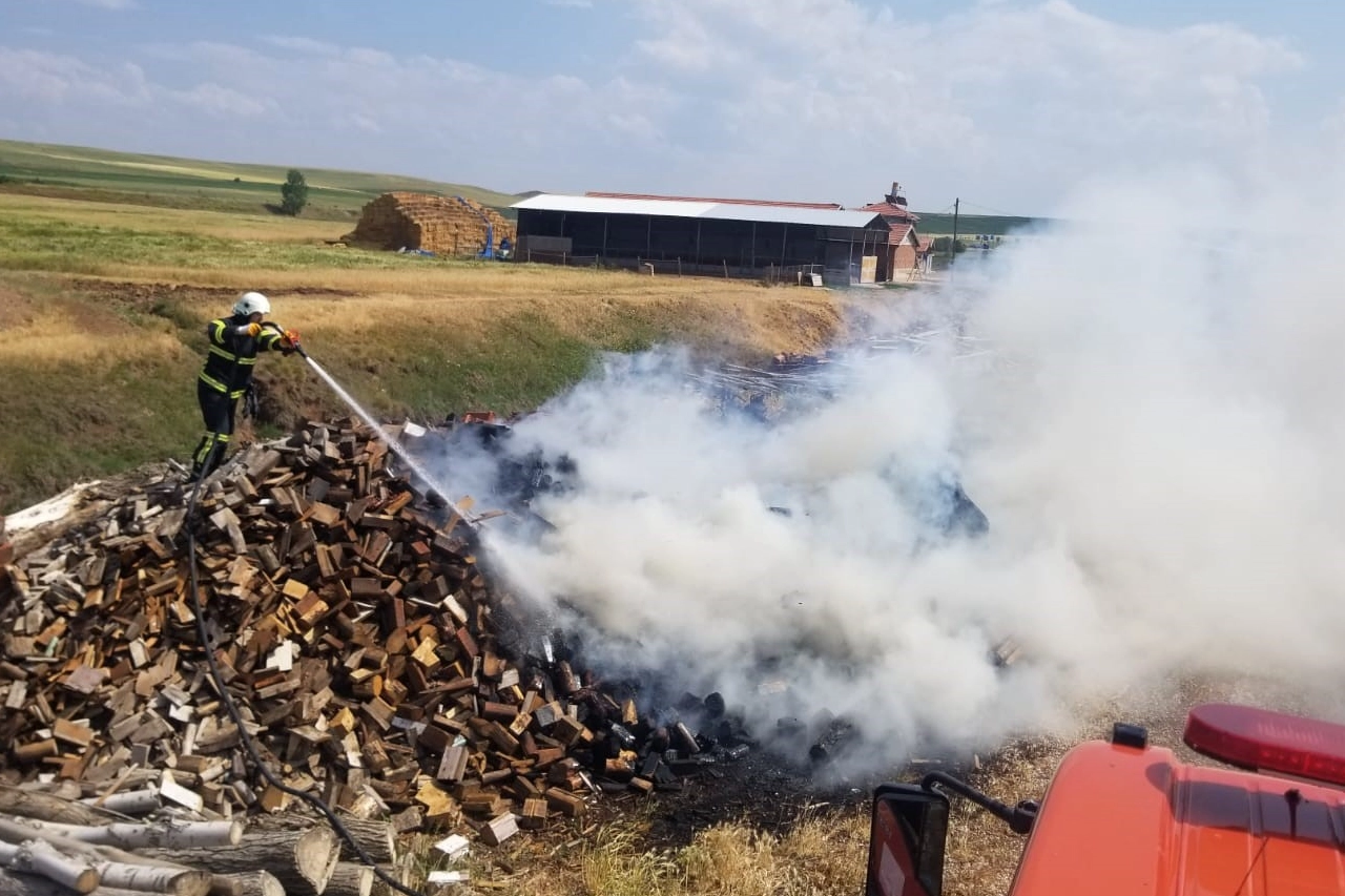Olay, Alaca ilçesindeki ağaç pazarında meydana geldi. Edinilen bilgilere göre, Nihat Kılıç’a ait iş yerinin önünde istiflenen odunlar henüz bilinmeyen bir sebeple alev aldı. Yangını fark eden iş yeri sahibi durumu hemen 112 Acil Çağrı Merkezine bildirdi. İhbar üzerine olay yerine sevk edilen Alaca Belediyesi İtfaiye ekipleri, yangını çevredeki diğer iş yerlerine sıçramadan söndürdü. Yangında yaklaşık 7 ton odun ve kereste tamamen yanarak kullanılamaz hale geldi.