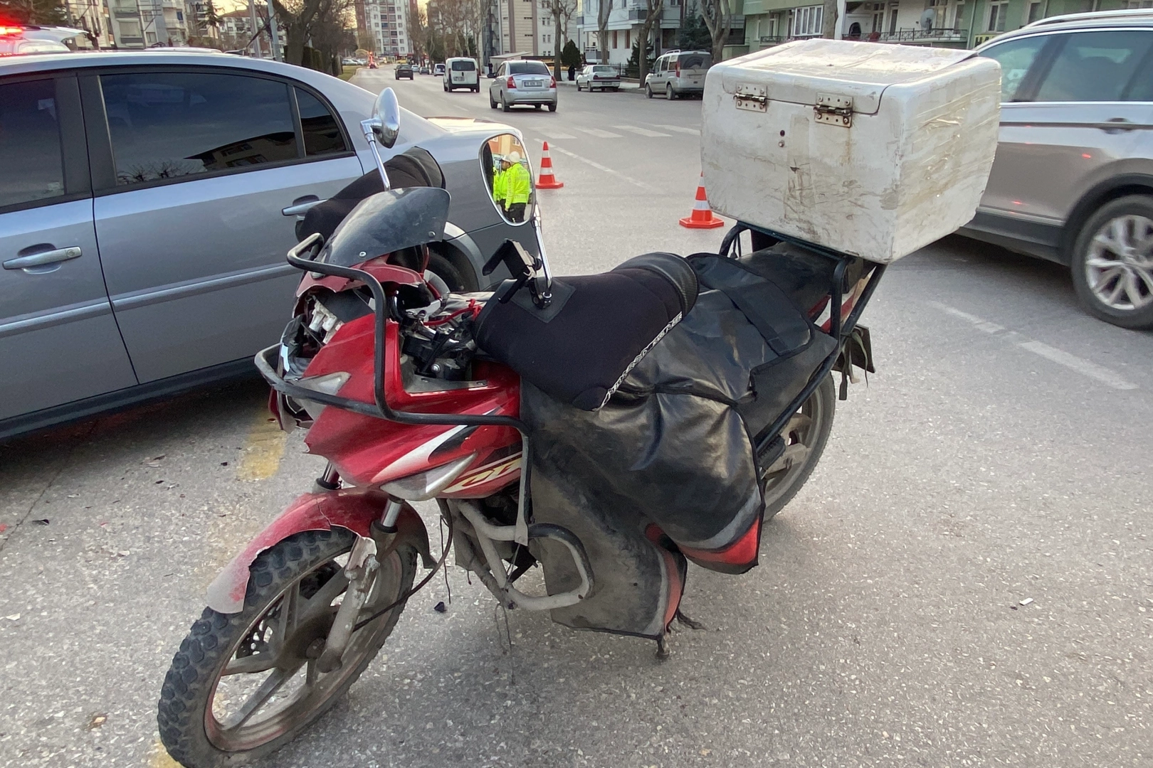 Kaza, Buharaevler Caddesi ile Selçuk 5. Sokak kesişiminde meydana geldi. Edinilen bilgilere göre, Selçuk 5. Sokak üzerinden caddeye çıkış yapan Selahattin S. idaresindeki 34 VK 3358 plakalı Opel marka otomobil ile cadde üzerinde seyir halinde olan Atilla Y. yönetimindeki 55 BDS 74 plakalı motosiklet çarpıştı. Otomobilin tekerleği, çarpışmanın şiddetiyle düşen motosiklet sürücüsünün kolunun üzerinden geçti. Çevredeki vatandaşların 112 Acil Çağrı Merkezi’ne ihbarı üzerine olay yerine sağlık ve polis ekipleri sevk edildi. Motosiklet sürücüsü sağlık ekiplerince yapılan ilk müdahalenin ardından Hitit Üniversitesi Erol Olçok Eğitim ve Araştırma Hastanesine kaldırıldı.