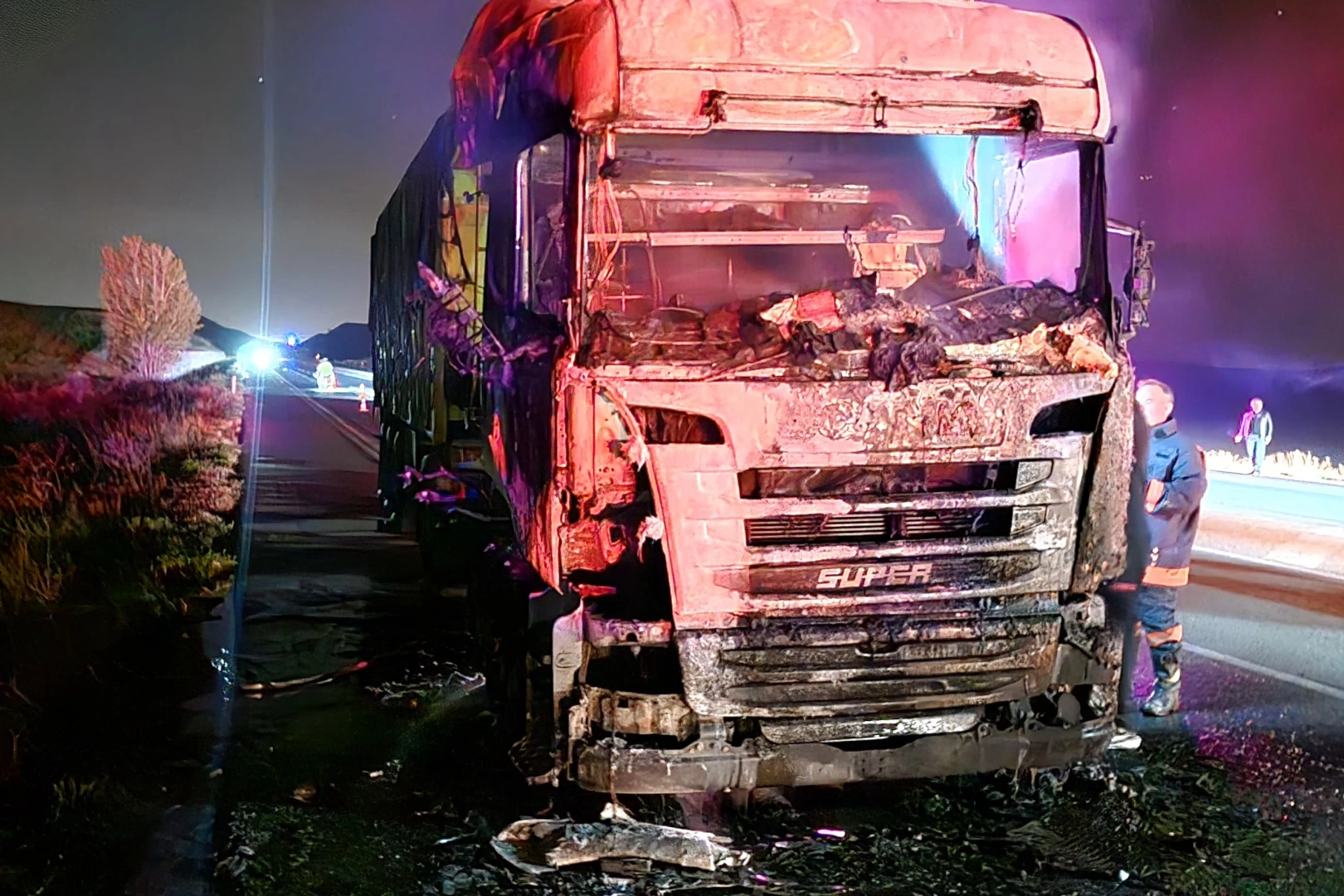 Olay, Alaca ilçesi Fakılar köyü mevkiinde meydana geldi. Edinilen bilgiye göre, Samsun'dan Osmaniye'ye yem hammaddesi taşıyan Ali Rıza Ç. idaresindeki 80 LF 440 plakalı Scania marka tırın kabin kısmında henüz bilinmeyen bir sebeple yangın çıktı. Yangını fark eden sürücü, aracı emniyet şeridinde durdurarak dışarı çıktı ve durumu 112 Acil Çağrı Merkezine bildirdi.