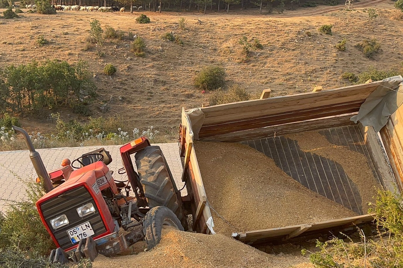 Kaza, merkeze bağlı Umut köyü Bayraktepe yolunda meydana geldi. Edinilen bilgiye göre, S.K. (69) idaresindeki 05 LN 176 plakalı traktör, sürücüsünün direksiyon hakimiyetini kaybetmesi sonucu kontrolden çıkarak şarampole devrildi. Römorkta yüklü mahsuller etrafa saçılırken, sürücü ağır yaralandı.
