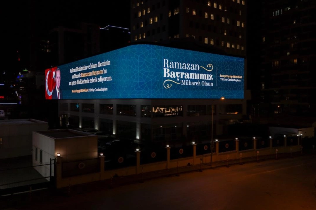 İletişim Başkanlığının dijital ekranında, Cumhurbaşkanı Recep Tayyip Erdoğan'ın Ramazan Bayramı mesajı yayınlandı.