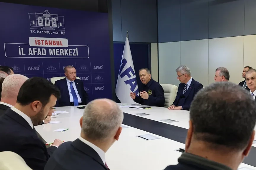 Cumhurbaşkanı Erdoğan, İstanbul'u sarsan 6.2'lik depremin ardından Ankara'dan İstanbul'a gelerek AFAD İl Müdürlüğü'nde önemli bir toplantı gerçekleştirdi. Toplantıya, Çevre, Şehircilik ve İklim Değişikliği Bakanı Murat Kurum, Gençlik ve Spor Bakanı Osman Aşkın Bak, İçişleri Bakanı Ali Yerlikaya, Sağlık Bakanı Kemal Memişoğlu ve İstanbul Valisi Davut Gül de katıldı.