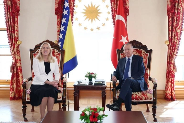 Cumhurbaşkanlığı'ndan yapılan açıklamada, "Cumhurbaşkanımız Recep Tayyip Erdoğan, Türkiye’ye ziyarette bulunan Bosna Hersek Devlet Başkanlığı Konseyi Başkanı Jelka Sviyanoviç ile Cumhurbaşkanlığı Dolmabahçe Ofisi'nde bir araya geldi." denildi.