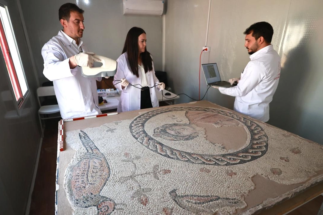 Görüntüleme, projelendirme ve tespit amaçlarıyla birçok aleti laboratuvarımıza hediye ettiler. Depremin ilk gününden beri yanımızda olan Japon halkına teşekkür ediyoruz. Laboratuvarda, müzemizin içinde küçük de olsa hasar almış taşınabilir eserlerimiz başta olmak üzere mozaik ve taş eserlerimizin onarımı gerçekleştiriliyor."