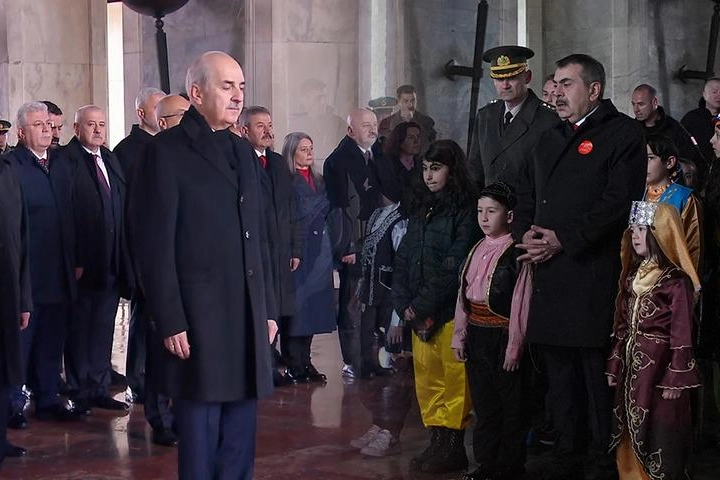 Daha sonra ise TBMM Başkanı Numan Kurtulmuş ve beraberindeki heyet Anıtkabir'e geldi. Kurtulmuş, Atatürk'ün mozolesine çelenk bıraktıktan sonra saygı duruşunda bulunuldu.