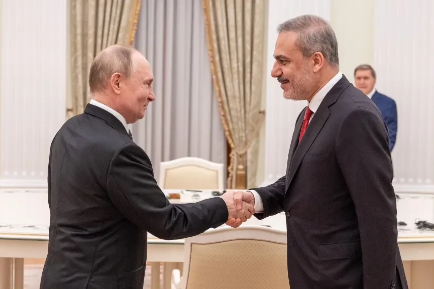 Dışişleri Bakanı Hakan Fidan, resmi temaslarda bulunmak üzere gittiği Rusya’da, Devlet Başkanı Vladimir Putin ile görüşüyor. Kremlin Sarayı'ndaki ikili zirvenin saat 19.30’da başladığı bildirildi. Görüşmede bölgesel gelişmeler ve ikili ilişkilerin ele alınması bekleniyor.