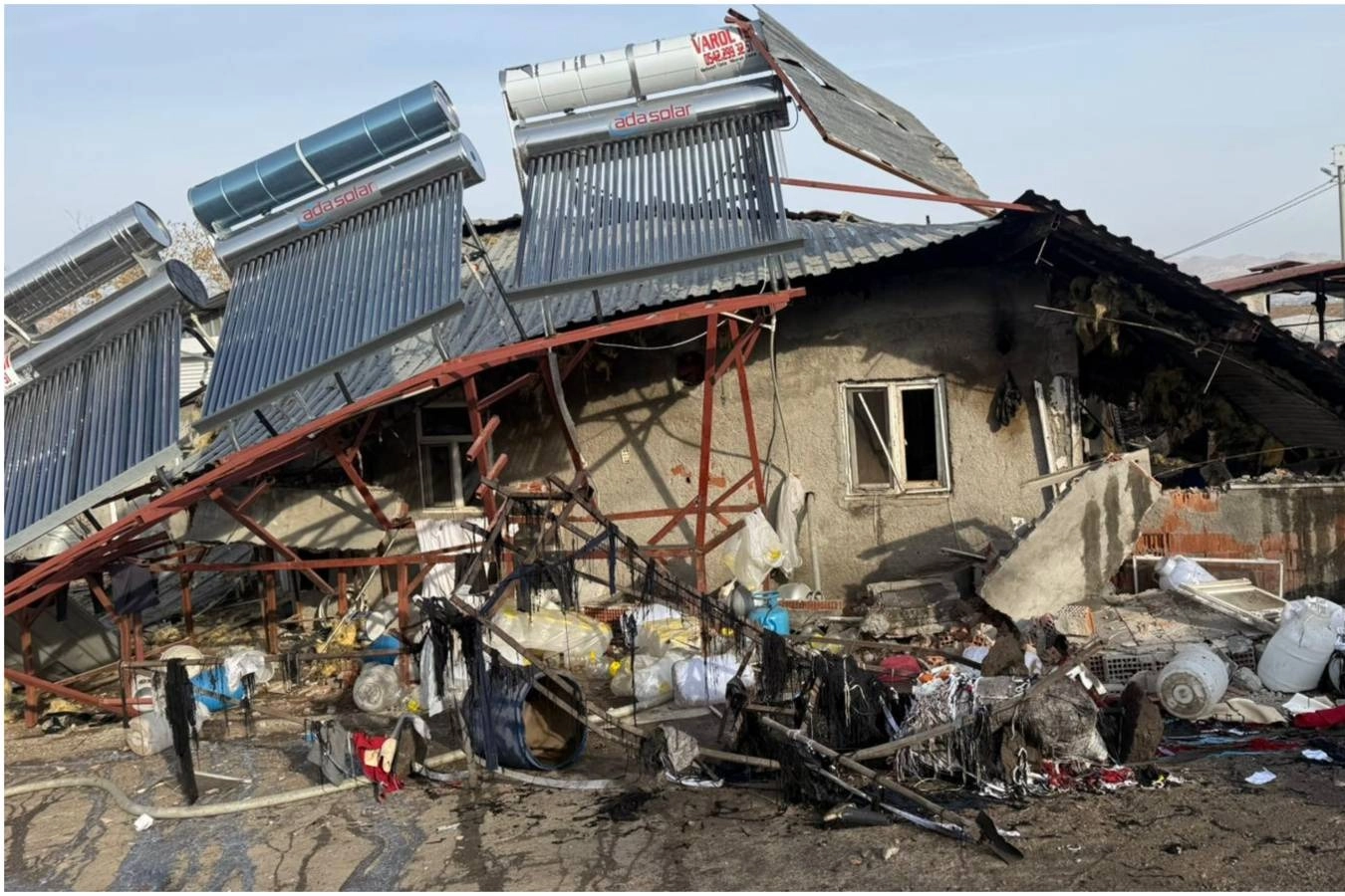 Patlamanın etkisiyle duvarlarında çökme meydana gelen tesis, hasar gördü.