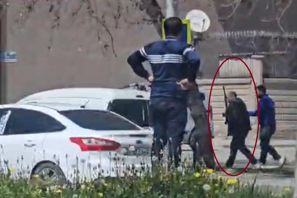 Edinilen bilgilere göre, Huzurevleri Mahallesi Diclekent Bulvarı'nda 3 kişi arasında çıkan kavgada, Ş.T. (28) silahla yaralandı. İhbar üzerine olay yerine polis ve sağlık ekibi sevk edildi. Yaralı, sağlık ekiplerinin ilk müdahalesinin ardından hastaneye sevk edildi. Elinde uzun namlulu silah olan bir kişi ve yaralı, cep telefonu kamerasına yansıdı.