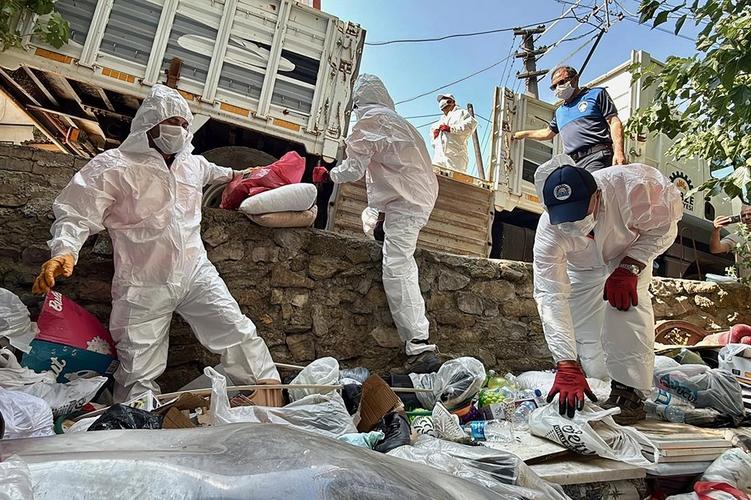 Temizlik çalışması başlatan ekipler, N.Ç. ile M.Ç'nin sahibi olduğu daireden çok sayıda kamyona yüklenen çöpleri çıkardı. Ev, çöpten arındırıldıktan sonra ilaçlandı.