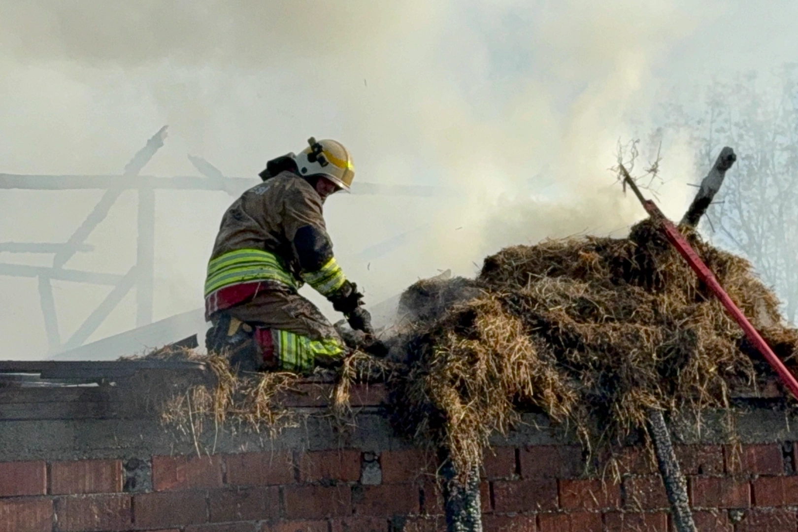 Alınan bilgilere göre, Hacıaliler köyünde İlhami A.’ya ait evin arka kısmında bulunan samanlıkta belirlenemeyen bir sebeple yangın çıktı. Alevlerin yükseldiğini görenlerin ihbarı üzerine bölgeye Düzce Belediyesi İtfaiye Müdürlüğü ekipleri sevk edildi. Alevler kısa sürede samanlığı alev topuna çevirirken, itfaiye ekipleri kıvılcımların samanlığın yanında bulunan eve sıçramasını engelledi. Saman balyalarının alevlenmesini engellemek isteyen bir itfaiye eri ise balyaların içine girerek yangını söndürdü. Bu esnada diğer itfaiye erleri arkadaşlarının alevlerden uzak kalması için sürekli su sıktı. Yangın 1 saatlik çalışma ile söndürülürken, söndürme çalışmaları kameralara yansıdı.