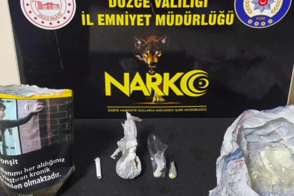 Düzce Cumhuriyet Başsavcılığı koordinesinde Narkotik Suçlarla Mücadele Şube Müdürlüğü ekiplerince Beyciler Mahallesi'nde 1 şahsa yönelik operasyon yapıldı. Yapılan operasyonda 3 parça halinde toplam 40 gram sentetik kannabinoid maddesi, 3 parça halinde toplam 5 gram uyuşturucu hammaddesi (yaklaşık 500 gram mentetik jannabinoid elde edilebilecek hammadde) ele geçirildi. 4 ayrı suç kaydı bulunan Z.S. (22) gözaltına alındı. Düzce Cumhuriyet Başsavcılığı tarafından uyuşturucu madde ticareti yapmak suçundan Sulh Ceza Hakimliğine sevk edilen zanlı tutuklandı. Şüpheliden uyuşturucu madde satın aldığı tespit edilen 2 şahıs hakkında duyuşturucu a madde kullanma suçundan adli işlem yapıldı.