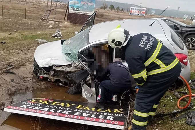 Öner Karapınar ile yanındaki arkadaşı Sami Sazlı araçta sıkışarak ağır yaralandı. İhbar üzerine olay yerine jandarma, itfaiye ve sağlık ekipleri sevk edildi. İtfaiye ekiplerince sıkıştıkları yerden çıkarılan yaralılar, ambulanslarla Keşan Devlet Hastanesi'ne kaldırıldı.