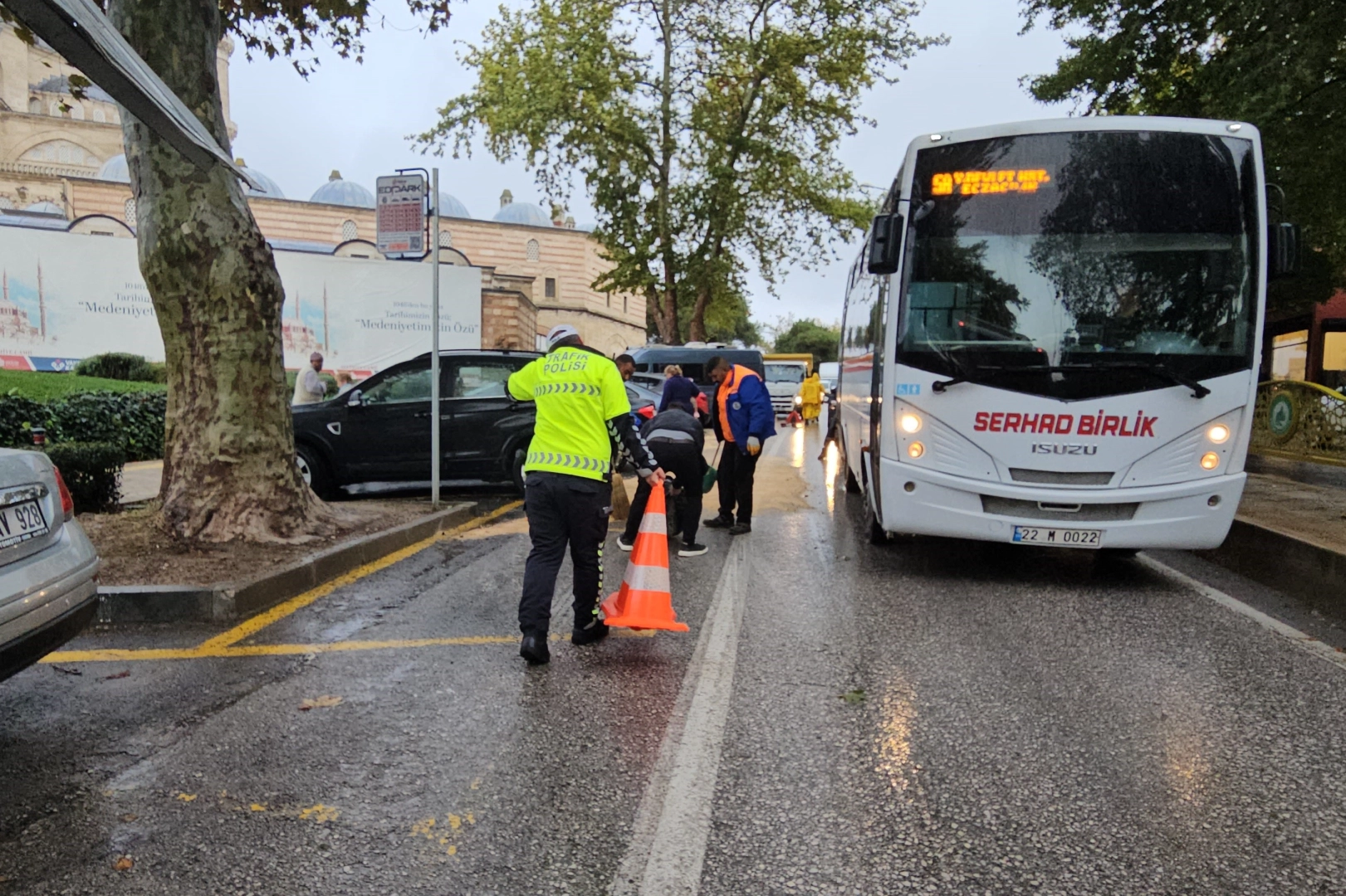 Edirne fuarda kullanılan yağların taşındığı bir araçtan yola sıvı madde aktı. Maddenin zemini kayganlaştırması sonucu Kıyık Caddesi’nde seyreden araçlar kontrolden çıktı. 4 aracın karıştığı kazada bir sürücü kaldırıma çıktı, diğer araçlar ise birbirine çarparak durabildi.