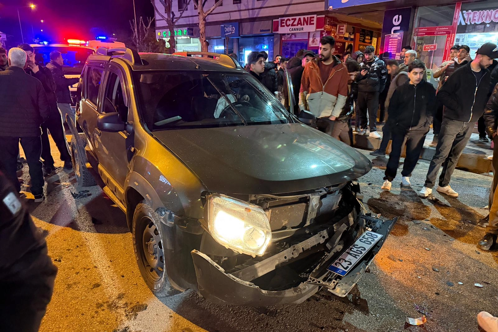 Çarpışmanın etkisiyle savrulan SUV tipi araç, park halindeki 23 HT 121 plakalı kamyonete çarparak durabildi.