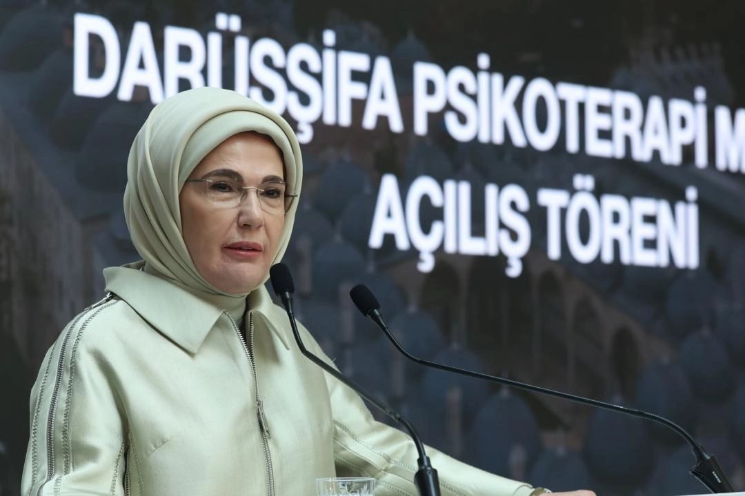 Cumhurbaşkanı Recep Tayyip Erdoğan’ın eşi Emine Erdoğan, Süleymaniye'deki İbn Haldun Üniversitesi (İHÜ) İPAM Darüşşifa Psikoterapi Merkezi'nin açılışında yaptığı konuşmada, Kanuni Sultan Süleyman'ın vizyonundan, Mimar Sinan'ın ellerinden çıkan merkezde katılımcılarla bir araya gelmekten mutluluk duyduğunu söyledi.