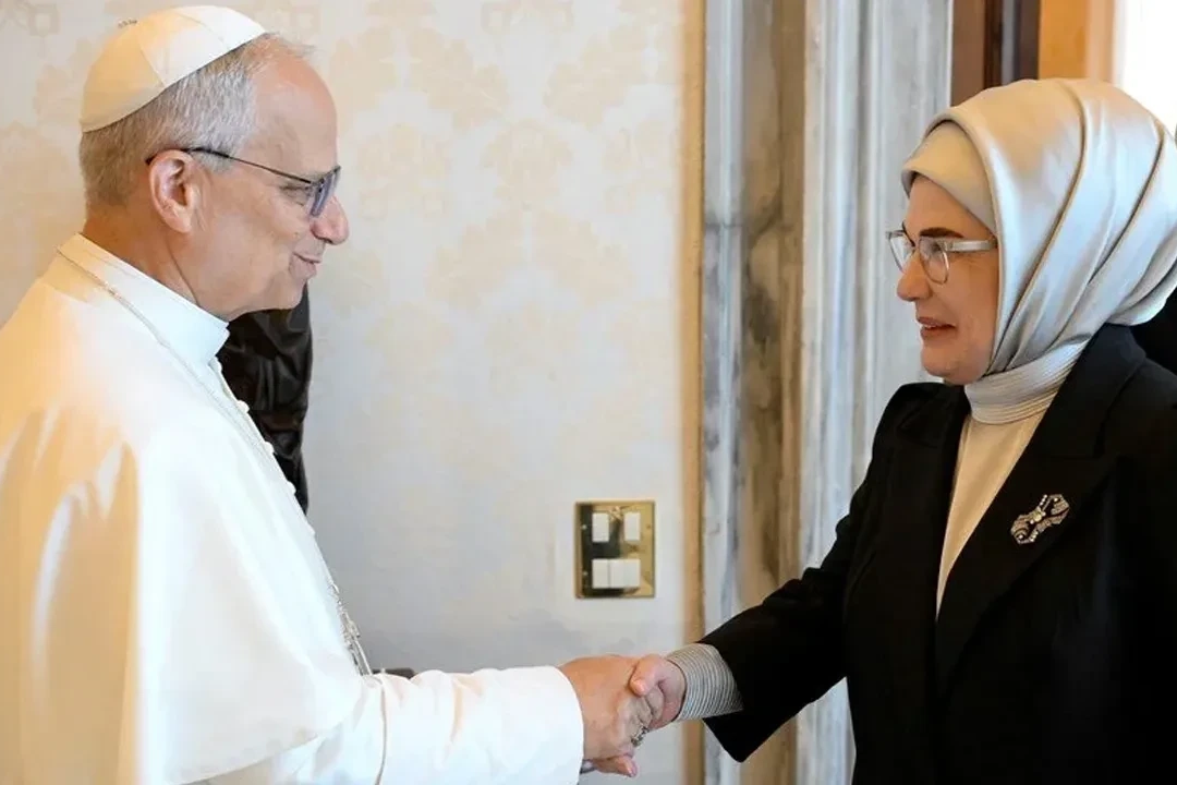 Papalık Sosyal Bilimler Enstitüsü'nde gerçekleşen "Kardeşlik Temelli Ekonomi: Etik Çoktaraflılık" başlıklı etkinlikte konuşmak üzere Vatikan'da bulunan Emine Erdoğan, Vatikan Apostolik Sarayı'nda Papa 14. Leo ile de bir görüşme yaptı. Cumhurbaşkanlığı kaynaklarından edinilen bilgiye göre, görüşmede Gazze'de yaşanan insanlık dramı, iklim değişikliğine karşı mücadele çabaları, İslamofobi ve ırkçılığa karşı mücadele ile ailenin toplumdaki varlığının önemi ele alındı. Emine Erdoğan, görüşmede kısa süre önce göreve seçilen Papa 14. Leo'yu yeni görevi dolayısıyla tebrik ederek, bunun Hristiyan alemi için hayırlara vesile olması temennisini dile getirdi.