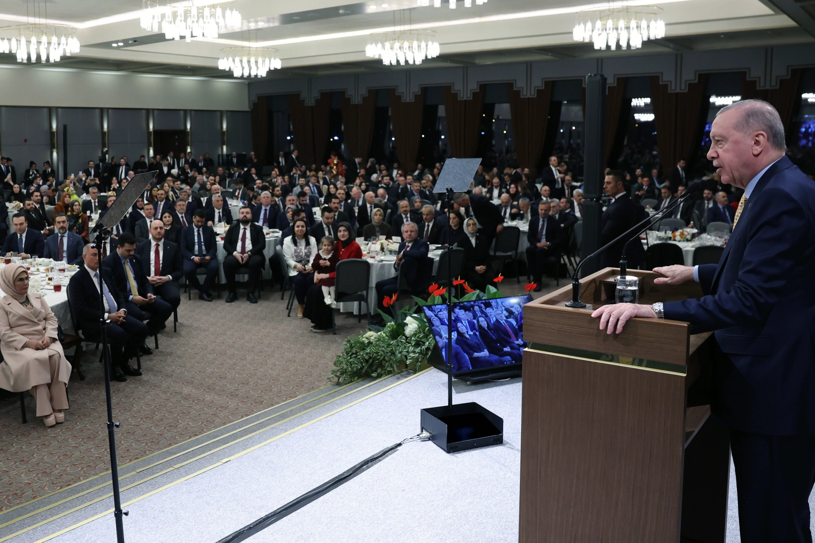 Temel misyonlarının her zaman ve her yerde vatandaşlarla birlikte olmak olduğunu söyleyen Erdoğan, "Eğer yaraları sarabiliyorsak, dertlere derman olabiliyorsak, sorunlara çözüm üretebiliyorsak, milletimizin hayır duasını alabiliyorsak işte o zaman vazifemizi yerine getiriyor ve bulunduğumuz makamın hakkını veriyoruz demektir. Biz 23 yıldır hep bunu yaptık. İnşallah aynı çizgide ilerleyeceğiz. 86 milyonun emanetini ve yüz milyonlarca mazlumun umudunu taşıyan bir kadro olarak durmak, duraklamak, rehavet içine girmek gibi bir şansımız, böyle bir lüksümüz yok. Özellikle çıkar amaçlı suç örgütlerinin dikte ettiği gündemlere hapsolmuş muhalefetin vizyonsuzluğuna bakarak hızımızı düşüremeyiz. Tempoyu sürekli artırmak, çıtayı biraz daha yükseğe çıkarmak zorundayız. Dolayısıyla koşturmaya devam edeceğiz. Daha fazla kalbe dokunmaya devam edeceğiz. Daha çok insanımızın elini tutmaya devam edeceğiz. Durmadan, dinlenmeden özellikle hiçbir insanımızı ayırmadan 86 milyonu muhabbetle kucaklamayı sürdüreceğiz. Son gününe kadar inşallah Ramazan-ı Şerif’i bu şekilde değerlendirmenin sabır ve samimiyet sınavını vermenin mücadelesi içinde olacağız" ifadelerini kullandı. "DÜNYANIN STRATEJİK OLDUĞU KADAR EN ZORLU BÖLGELERİNDEN BİRİNDE YAŞIYORUZ"