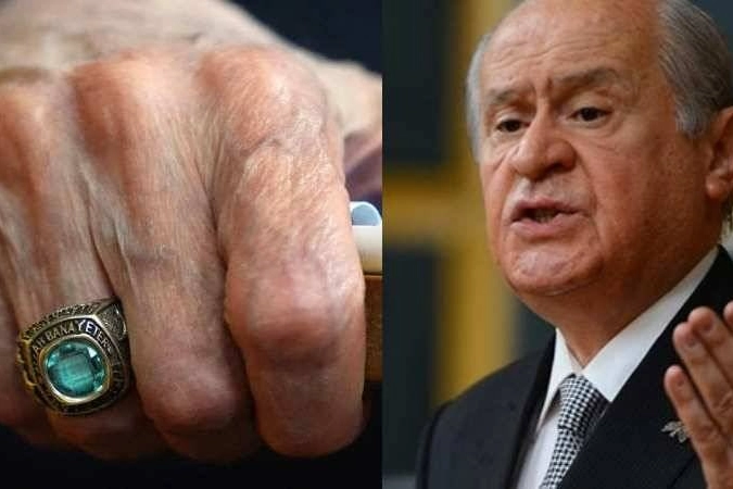 Öte yandan Bahçeli'nin taktığı yüzük de dikkat çekti. Yüzükte "Allah bana yeter" ifadeleri yer aldı.