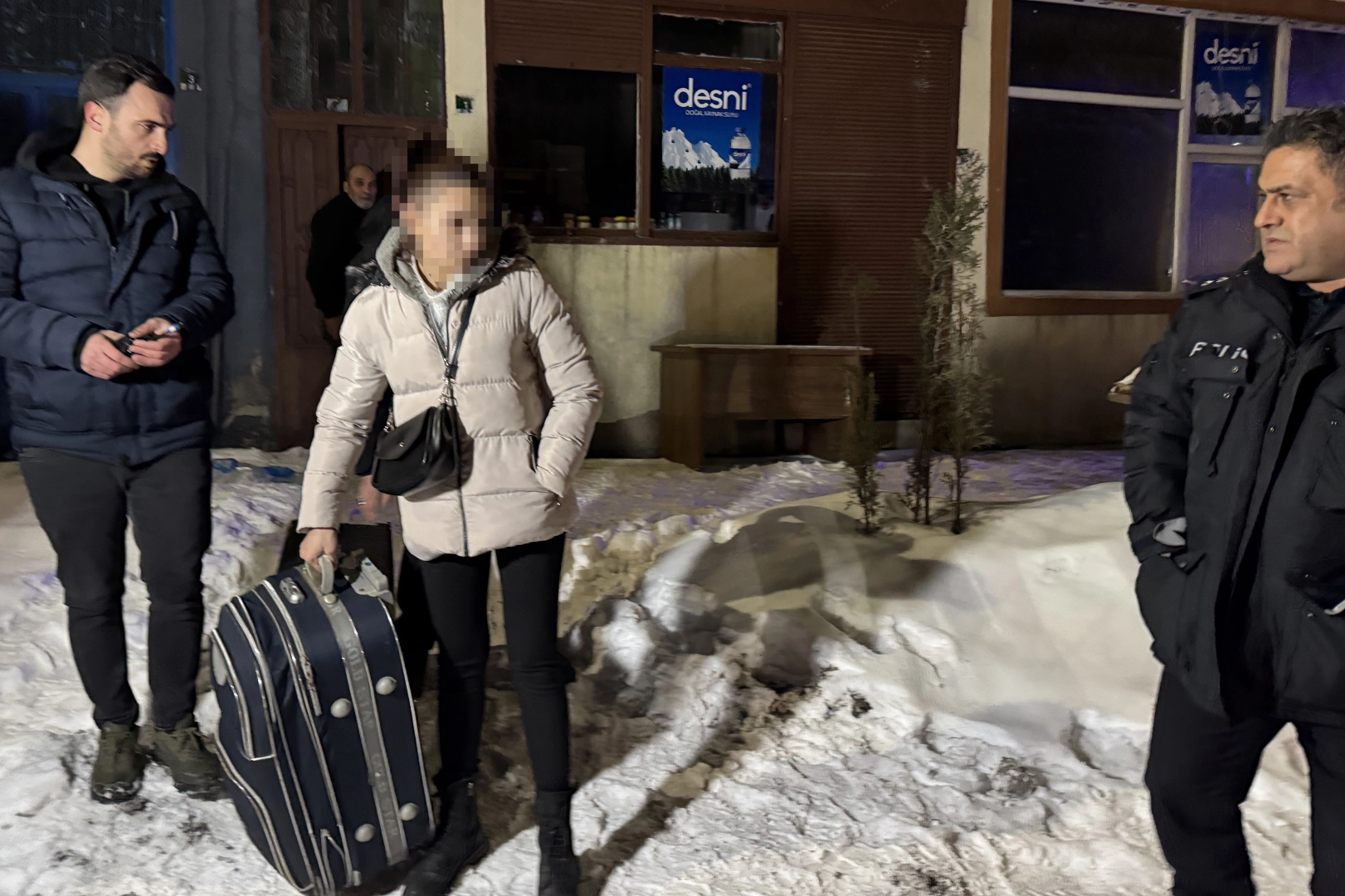 Kadın, eve gelen polislere dış kapının kilitli olduğunu belirtince, itfaiye ekipleri merdiven yardımıyla pencereden indirilmek istedi. Ancak, korktuğu gerekçesiyle merdivenden inemeyen B.K, itfaiye ekibinin kapıyı açmasıyla valizleriyle binadan çıkarıldı.