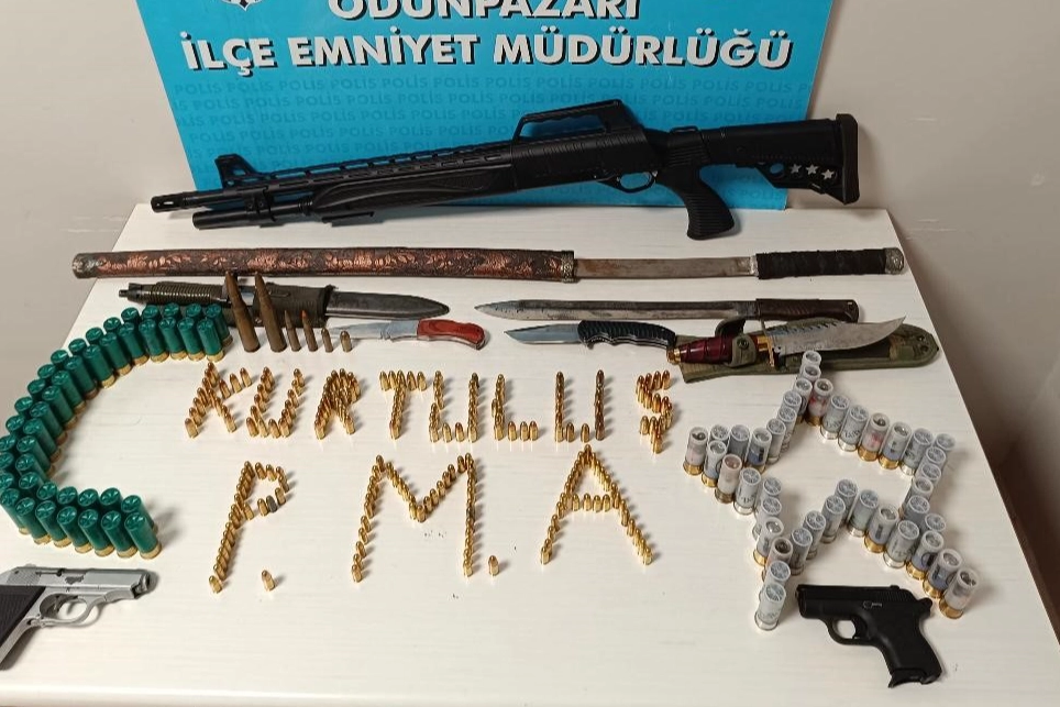 Odunpazarı İlçe Emniyet Müdürlüğü Kurtuluş Polis Merkezi Amirliği ekiplerince, bisikletli bir vatandaşa çarptıktan sonra silah çekerek hakaret ve tehdit eden N.A. isimli şahıs, yapılan kapsamlı çalışmalar neticesinde yeri tespit edilmiş, çalışmalar sonrasında yakalandı. Şahsa ait iş yerinde yapılan aramada; 2 adet ruhsatsız tabanca, 1 adet ruhsatsız av tüfeği, 296 adet fişek, 2 adet boş kovan, 2 adet mermi çekirdeği, 5 adet bıçak ve 1 adet kılıç ele geçirilmişti. Şüpheli N.A. işlemlerinden adliye sevk edildi. N.A. isimli şahıs çıkarıldığı mahkemece tutuklanarak cezaevine gönderildi.
