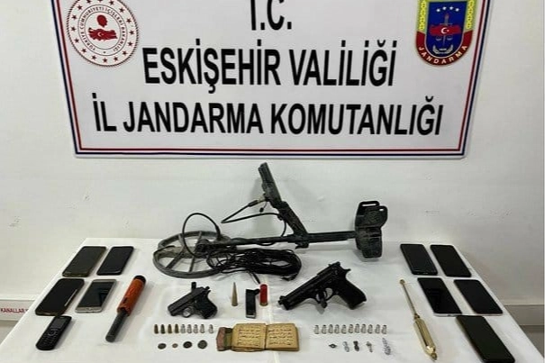 Eskişehir İl Jandarma Komutanlığı ekipleri, "Anadolu Mirası" operasyonları kapsamında define bulmak amacıyla izinsiz kazı yaptığı tespit edilen 10 şüphelinin ikametlerine eş zamanlı baskın yaptı. Adreslerde yapılan aramalarda 1 adet tarihi eser niteliği taşıyan el yazması Kur’an-ı Kerim, 9 adet bronz sikke ve obje, 1 adet ruhsatsız tabanca, 1 adet kurusıkı tabanca, 22 adet tabanca fişeği, 1 adet yılan kamera, 2 adet metal arama dedektörü ve 11 adet cep telefonu ele geçirildi. Şüpheliler hakkında çeşitli suçlardan soruşturma başlatıldı.