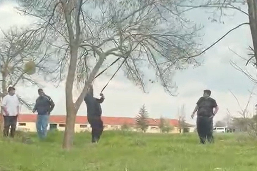Odunpazarı ilçesi Yenisofça Mahallesi'nde kaydedilen görüntülerde, 4 kişilik bir grubun ağaca attıkları halat ile dal kırmaya çalıştığı göze çarptı. Birinin elinde balta da bulunan şahısların mangal için ağaca zarar vermeye çalıştığı iddia edildi. Gruptan bir başka şahsın ağaç dalına balta salladığı görüldü. Dala takılan ipe asılan şahısların uğraşı ‘pes' dedirtti.