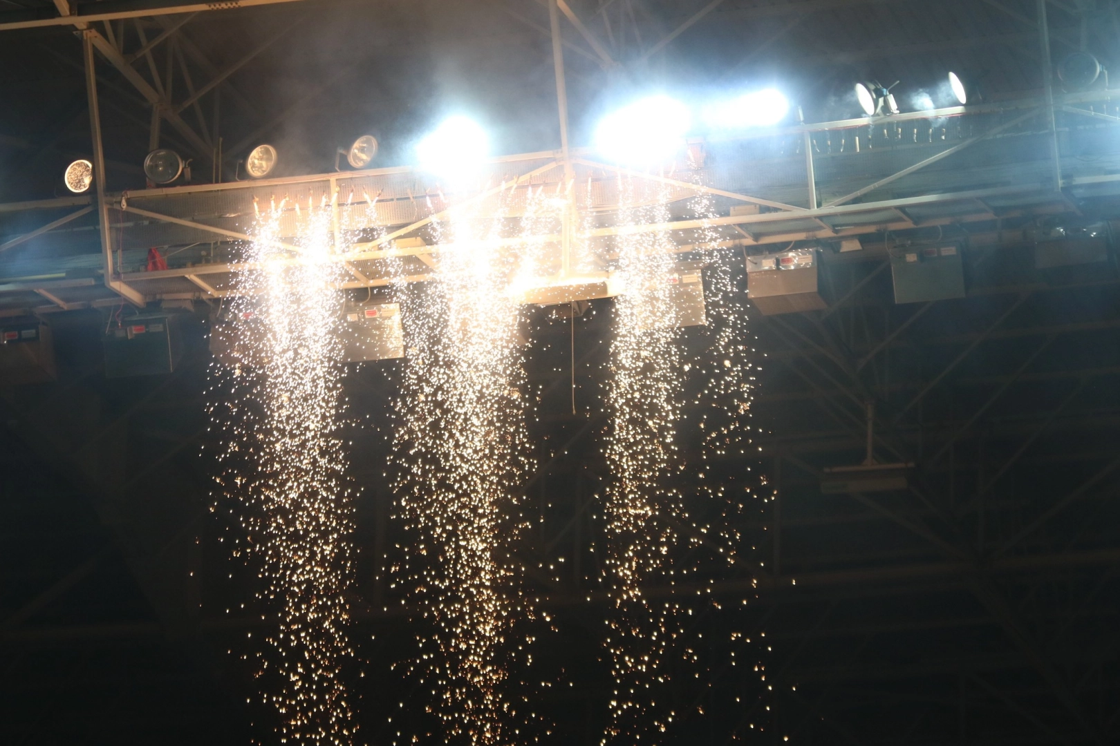 Eskişehirspor'un 'Şampiyonluk Gecesi' kutlamaları büyük coşkuyla sürüyor. Ünlü sanatçılar sahneye çıkmaya devam ederken, geçtiğimiz dakikalarda Hande Ünsal'ın konseri sırasında ilginç bir olay yaşandı. Eskişehir Yeni Atatürk Stadyumu'nun tepesinden taraftarın oturduğu bölgeye doğru kıvılcımlar saçan volkan havai fişekler yakıldı. Bu esnada taraftarın yaşadığı zor anlar objektiflere yansıdı. Tribünlerdeki vatandaşlar yaşanan olaya ıslıklarla tepki gösterdi.