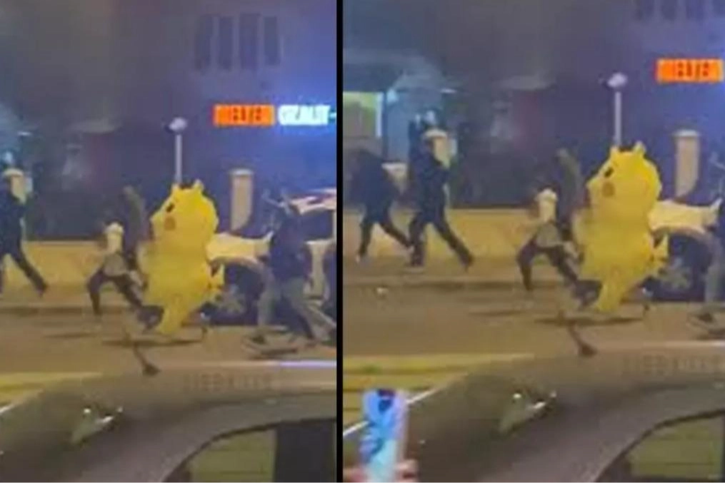 Diğer eylemcilerle birlikte polisten kaçarken görüntülenen Pikachu'nun görüntüler kısa sürece viral olmuştu.