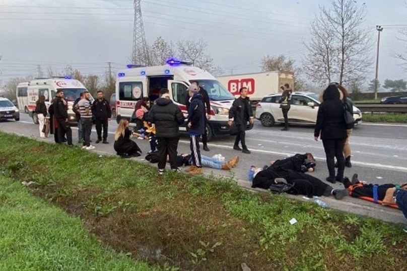 Korku dolu anların yaşandığı kazada minibüsteki 16 yolcu ile otomobil sürücüsü M.D. yaralandı.