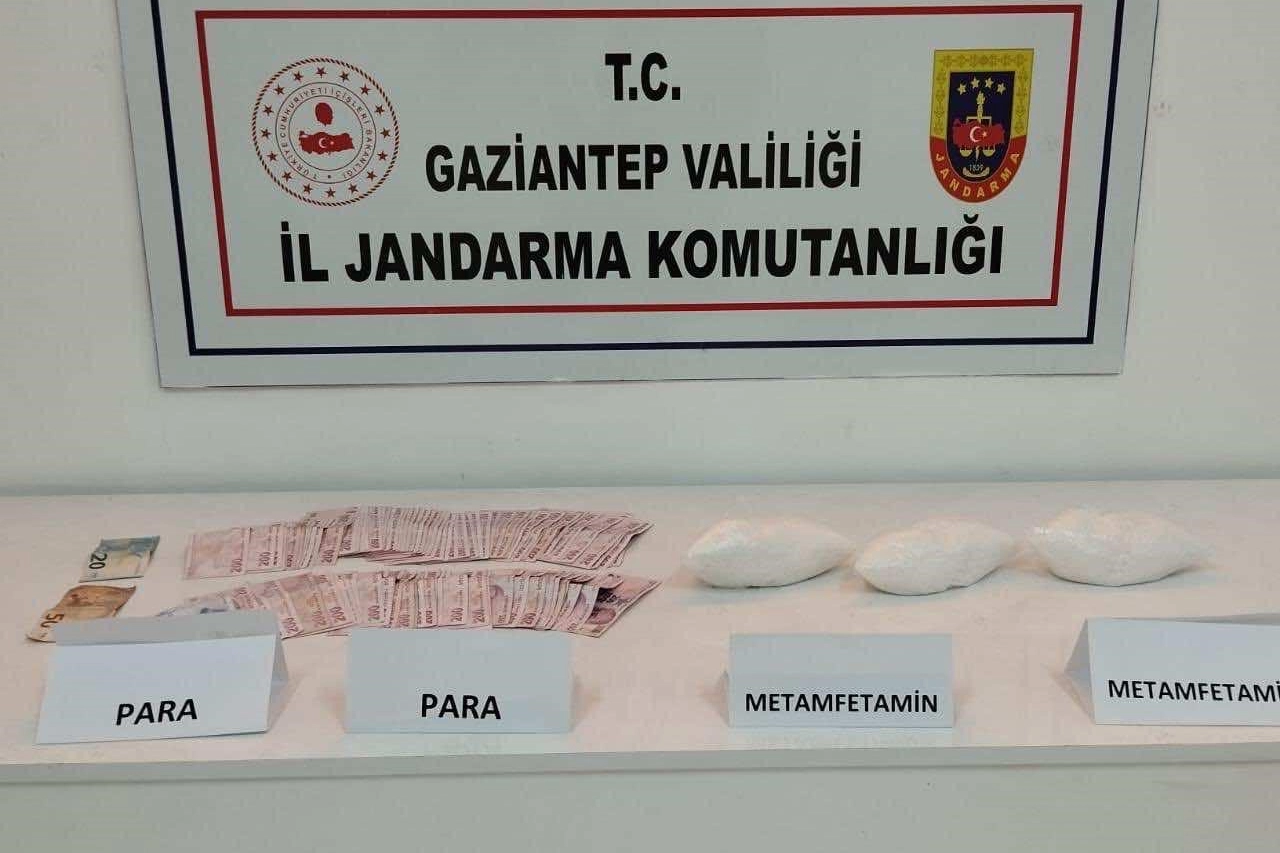 Gaziantep İl Jandarma Komutanlığı KOM Şube Müdürlüğü ve Cumhuriyet Başsavcılığı koordinesiyle uyuşturucu ve uyarıcı madde ile mücadeleye yönelik operasyon yapıldı. Operasyon çerçevesinde S.D. ve U.G. isimli iki şüpheli şahsa ait iki ayrı araçta arama yapıldı. Aramalar sonucunda 1.5 kilo metamfetamin cinsi uyuşturucu madde, 2 adet cep telefonu, 19 bin 800 TL ve 70 Euro suç geliri para ele geçirildi.