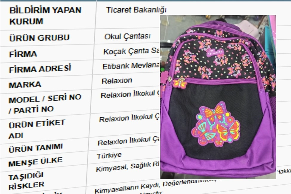 “Relaxion” marka çantanın kimyasal açıdan sağlık riski taşıdığı uyarısında bulunuldu.