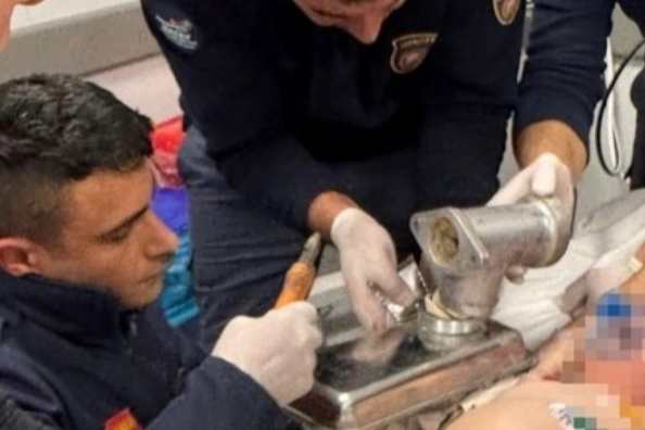Sağlık ekipleri durumu itfaiye ekiplerine bildirerek yardım istedi. İhbar üzerine hastaneye giden ekipler çocuğun elinin sıkıştığı kıyma makinesini kurtarmak için hastane yatağında çalışma başlattı.